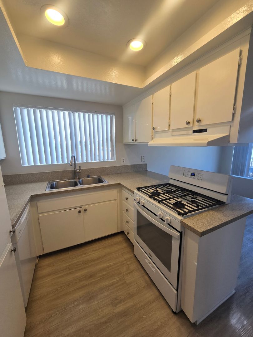 THE KITCHEN IS EQUIPPED WITH A GAS STOVE AND AMPLE STORAGE SPACE, PERFECT FOR THOSE THAT LOVE TO COOK.