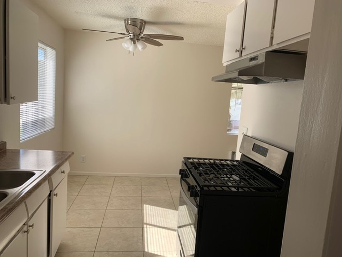 THE LARGE KITCHEN, COMPLETE WITH CERAMIC TILE, OFFERS PLENTY OF ROOM FOR COOKING AND DINING.