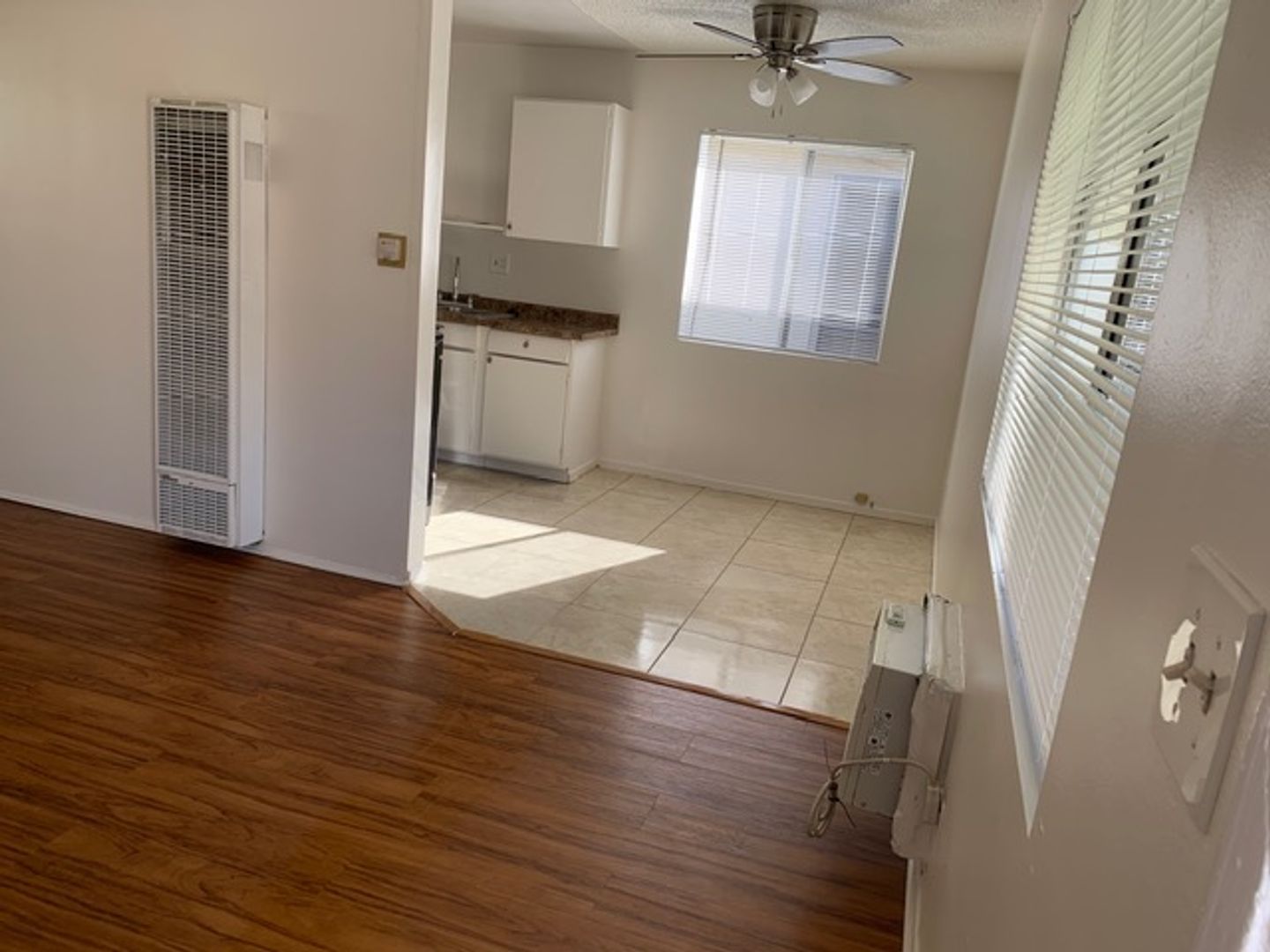 THIS APARTMENT FEATURES LAMINATE FLOORING THROUGHOUT, PROVIDING A MODERN AND SLEEK LOOK.