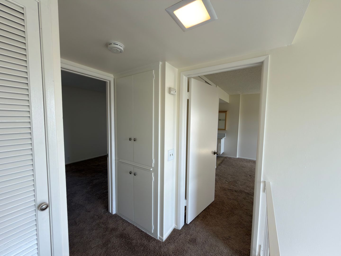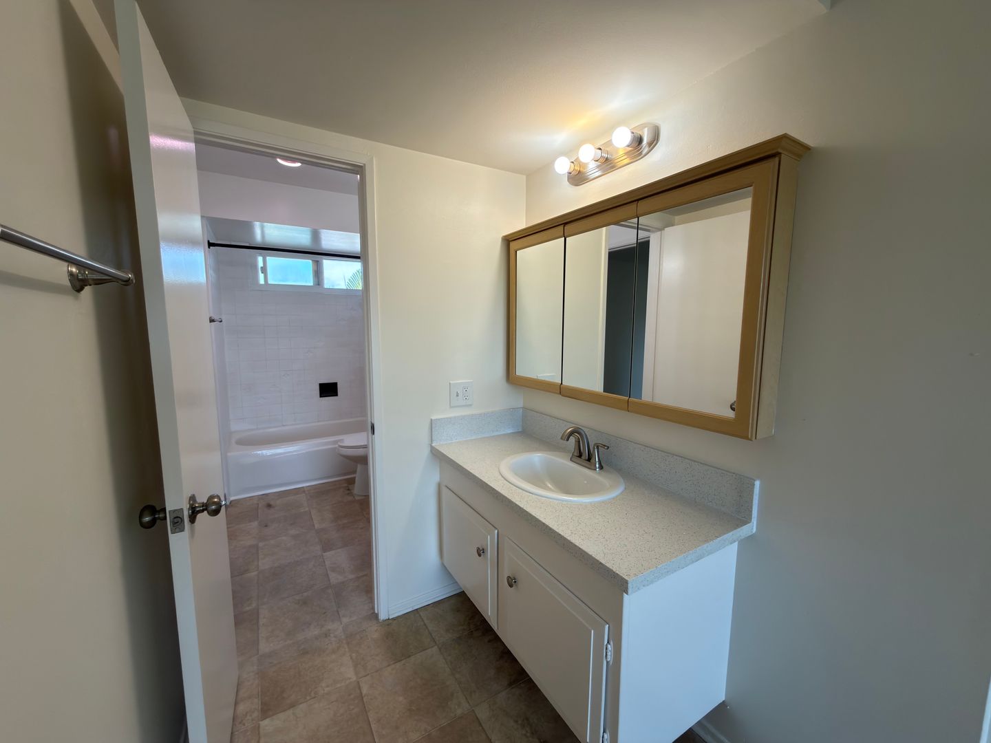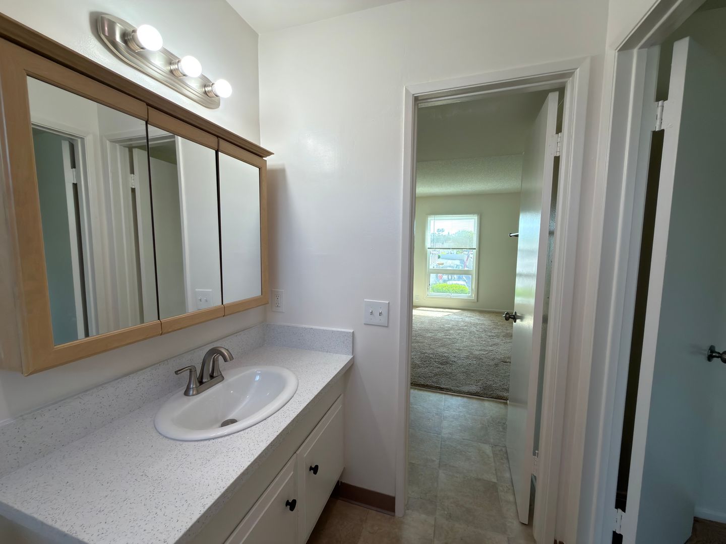 BOTH ROOMS ARE CARPETED AND HAVE LARGE CLOSET SPACES. THE RIGHT-SIDE BEDROOM AS WELL AS THE ADJACENT FULL BATHROOM, HOST VANITY SETS WITH TRIPLE-DOOR MIRRORED MEDICINE CABINETS.