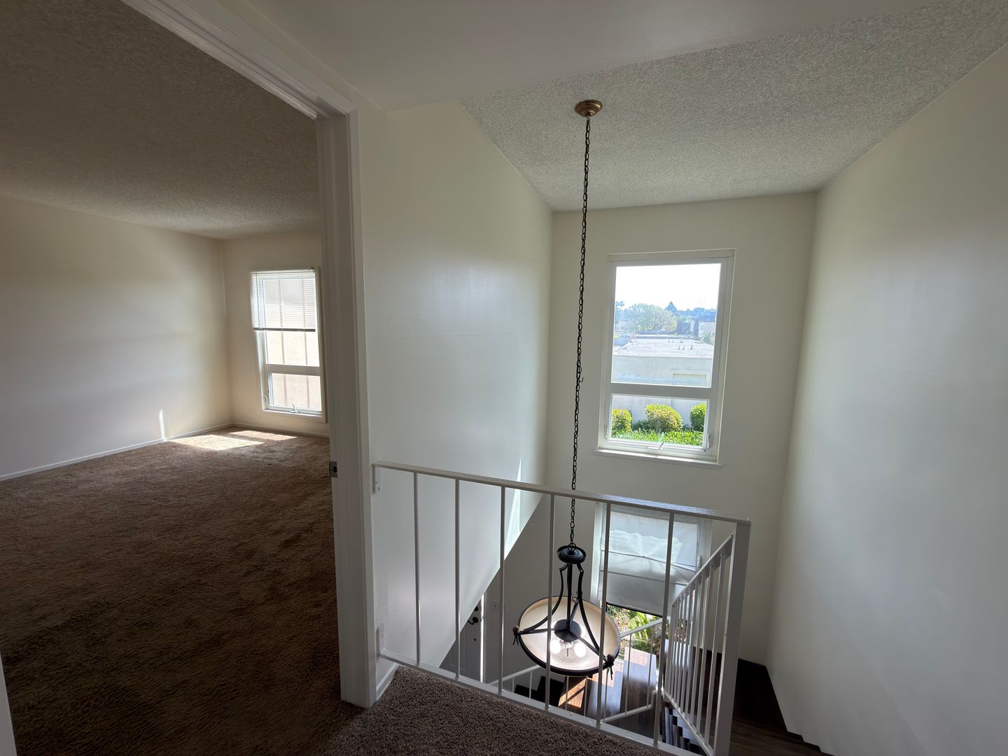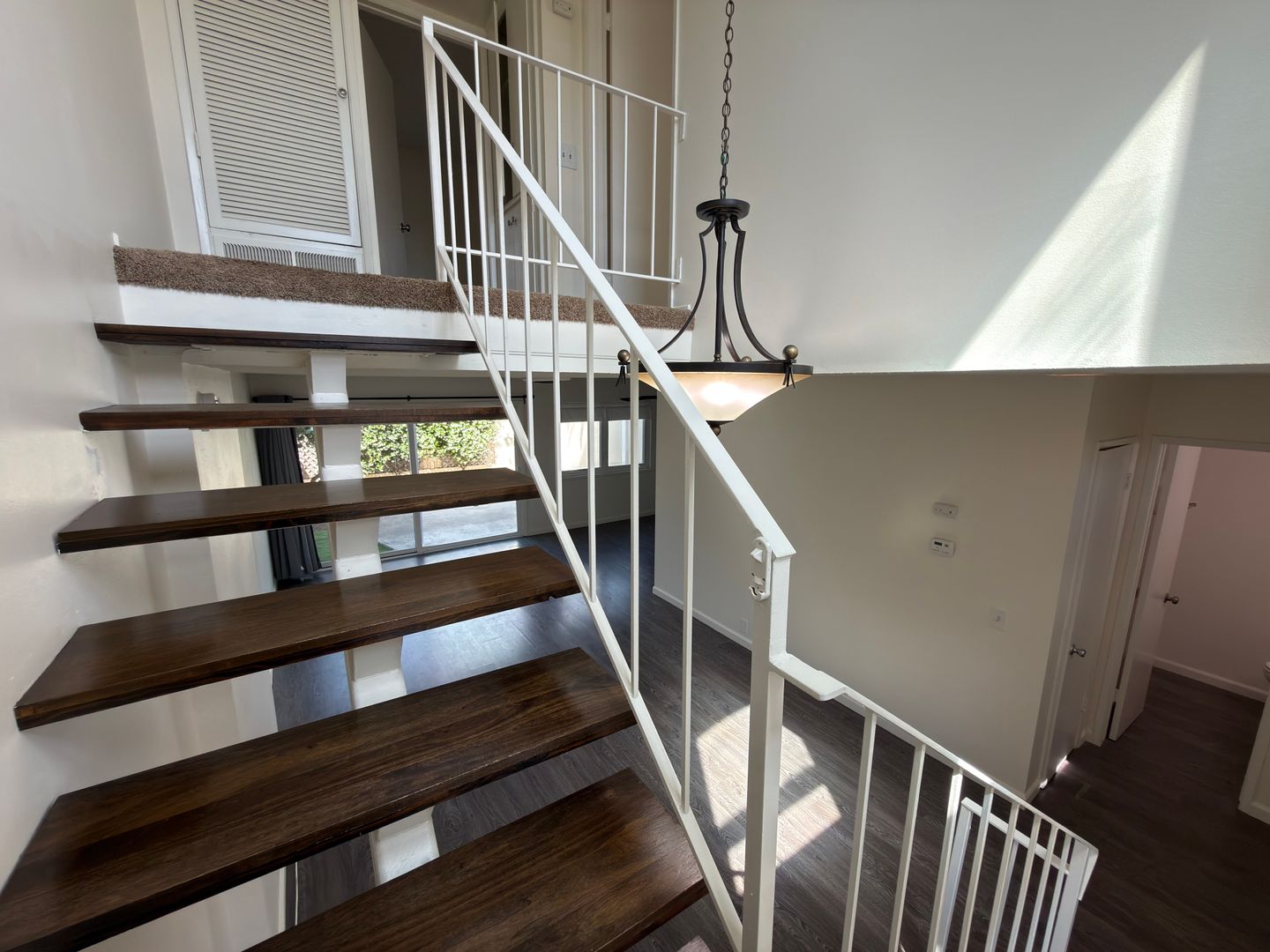 TRAVELING UP THE FLOATING STAIRCASE LEADS TO THE BEDROOMS AND SECOND BATHROOM.