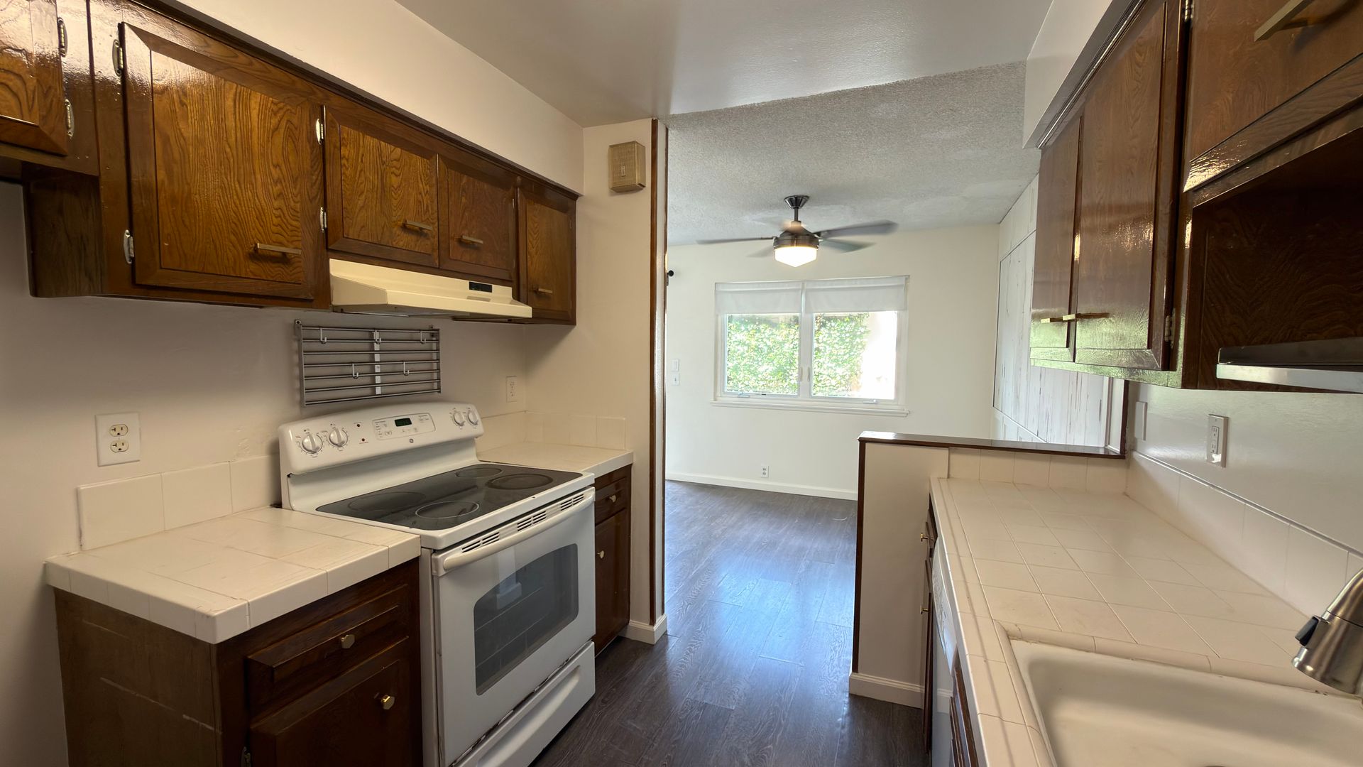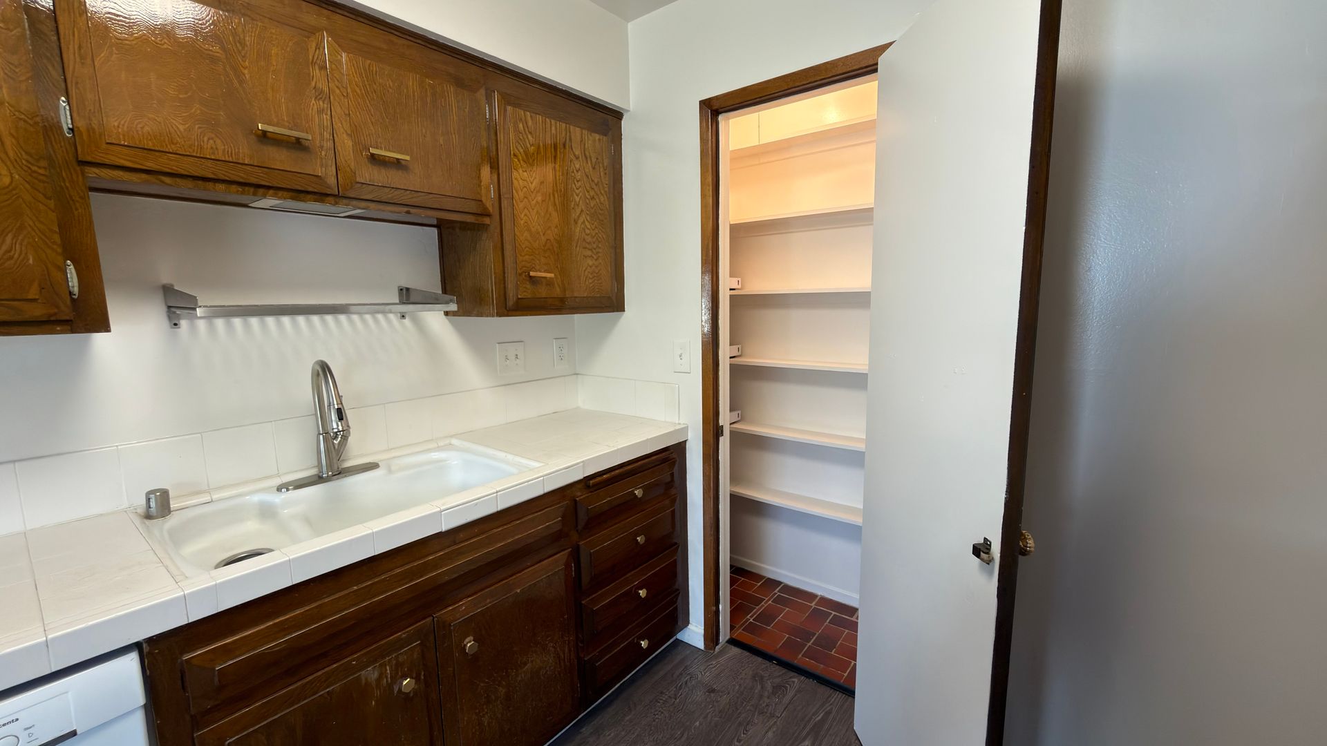 THE APPLIANCES FEATURED IN THE KITCHEN ARE A STOVE/OVEN AND A DISHWASHER. IN ADDITION TO THE CABINET SPACES, A MULTI-LEVEL PANTRY IS ALSO INCLUDED.